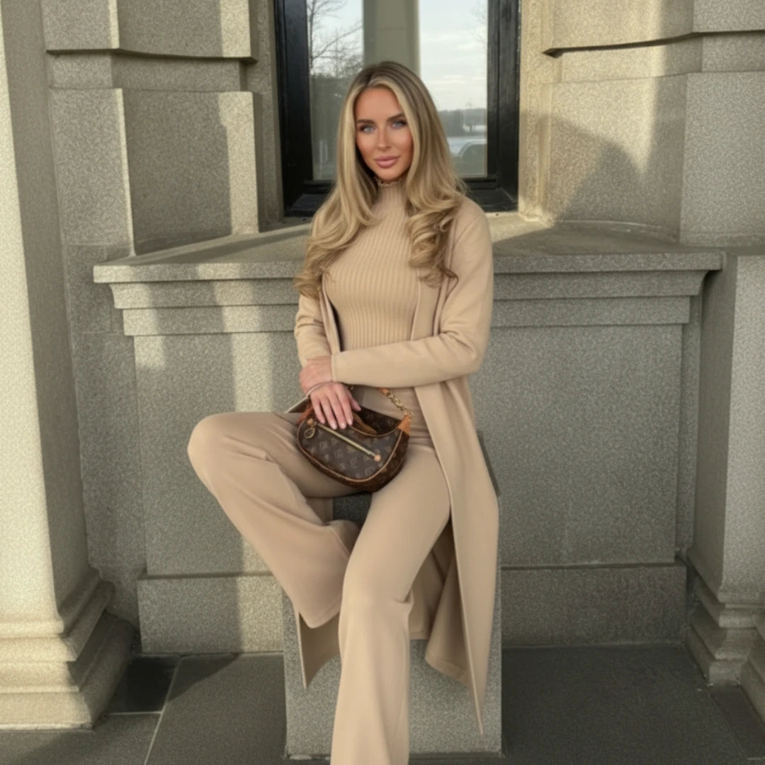 Wat een fijne set! Ik draag hem thuis, op werk én zelfs tijdens het reizen. Hij kreukt niet, blijft supermooi na het wassen en voelt zacht als cashmere. De kleur is neutraal maar toch chic – past overal bij. Echt een aanrader, ik ga er nog eentje in een andere kleur bestellen!